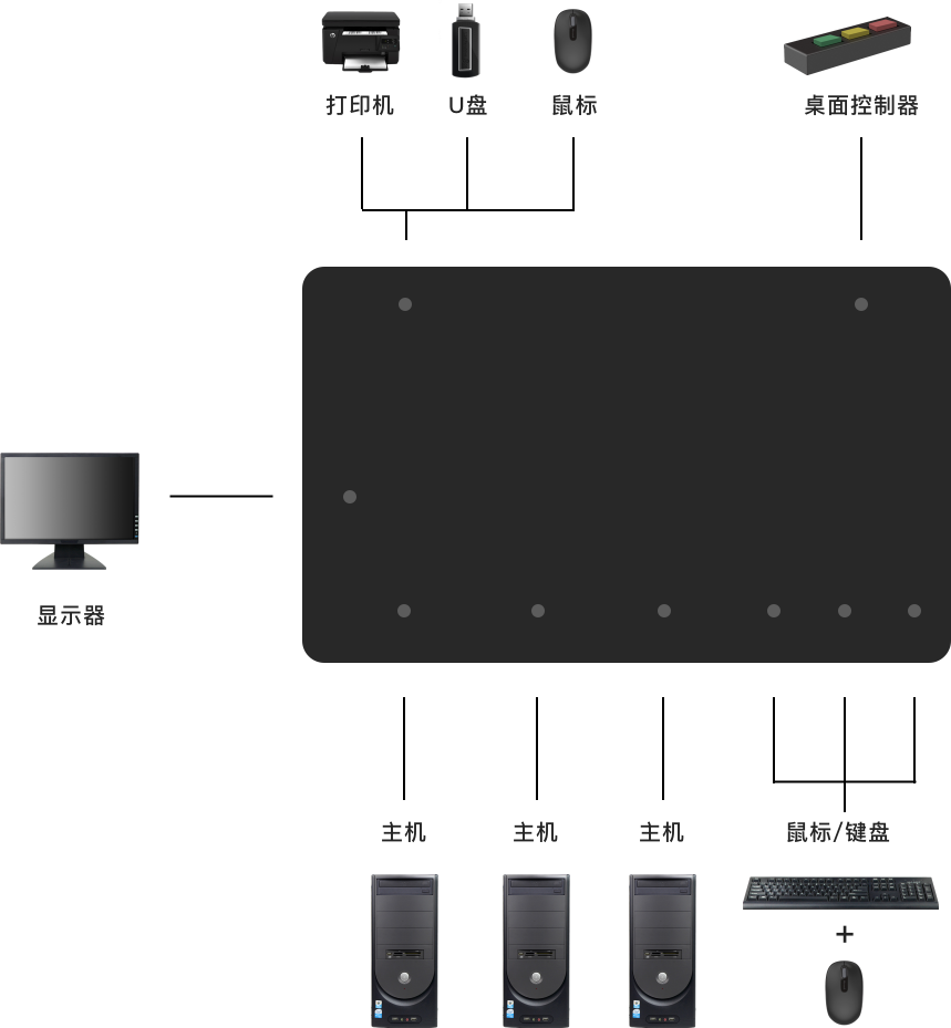 手边的控制器 切换更轻松显示器、键鼠连接线隐藏桌面整洁不凌乱