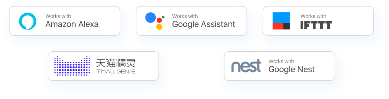 支持 Amazon Echo、Google Home、IFTTT、天猫精灵、Google Nest 等主流智能家居平台。
